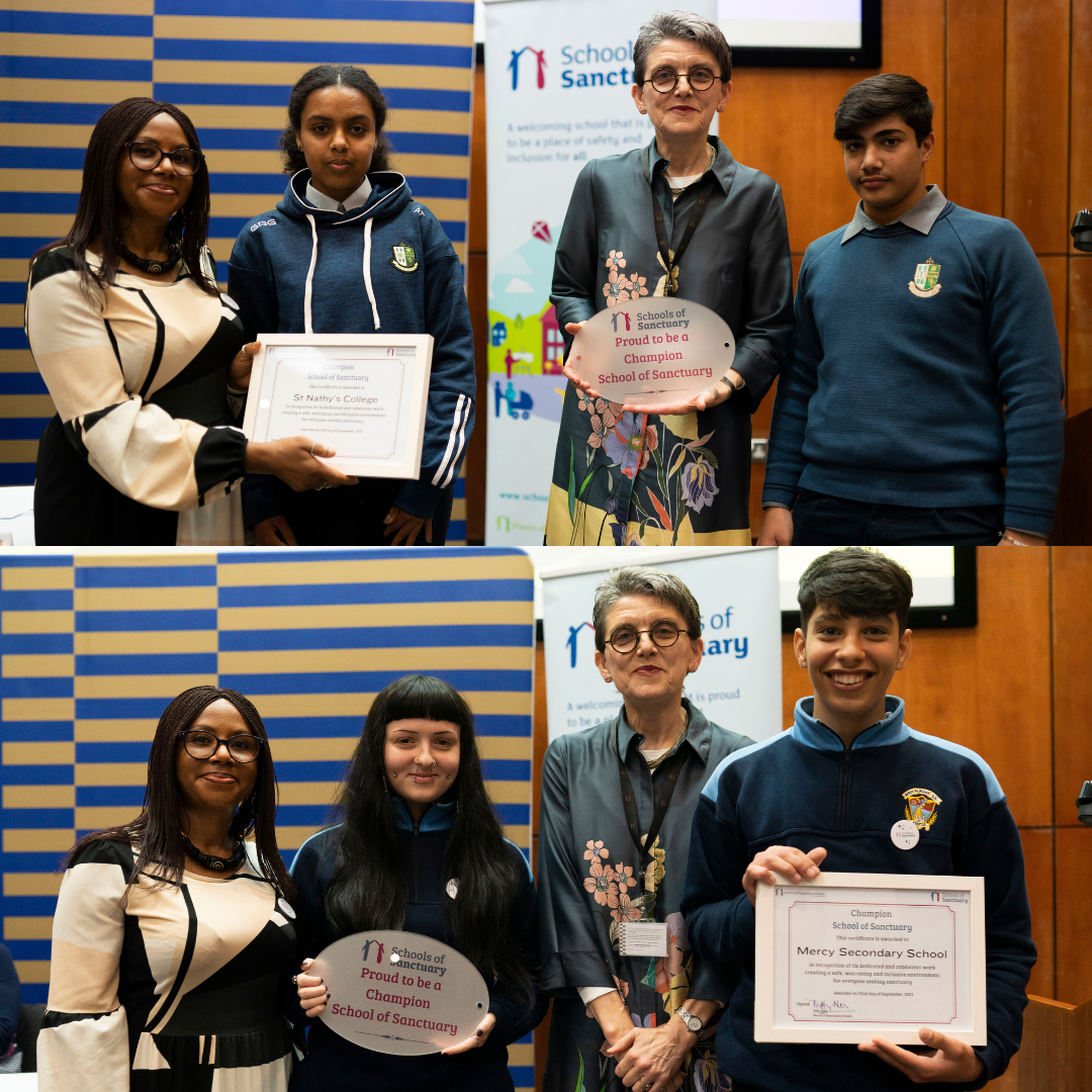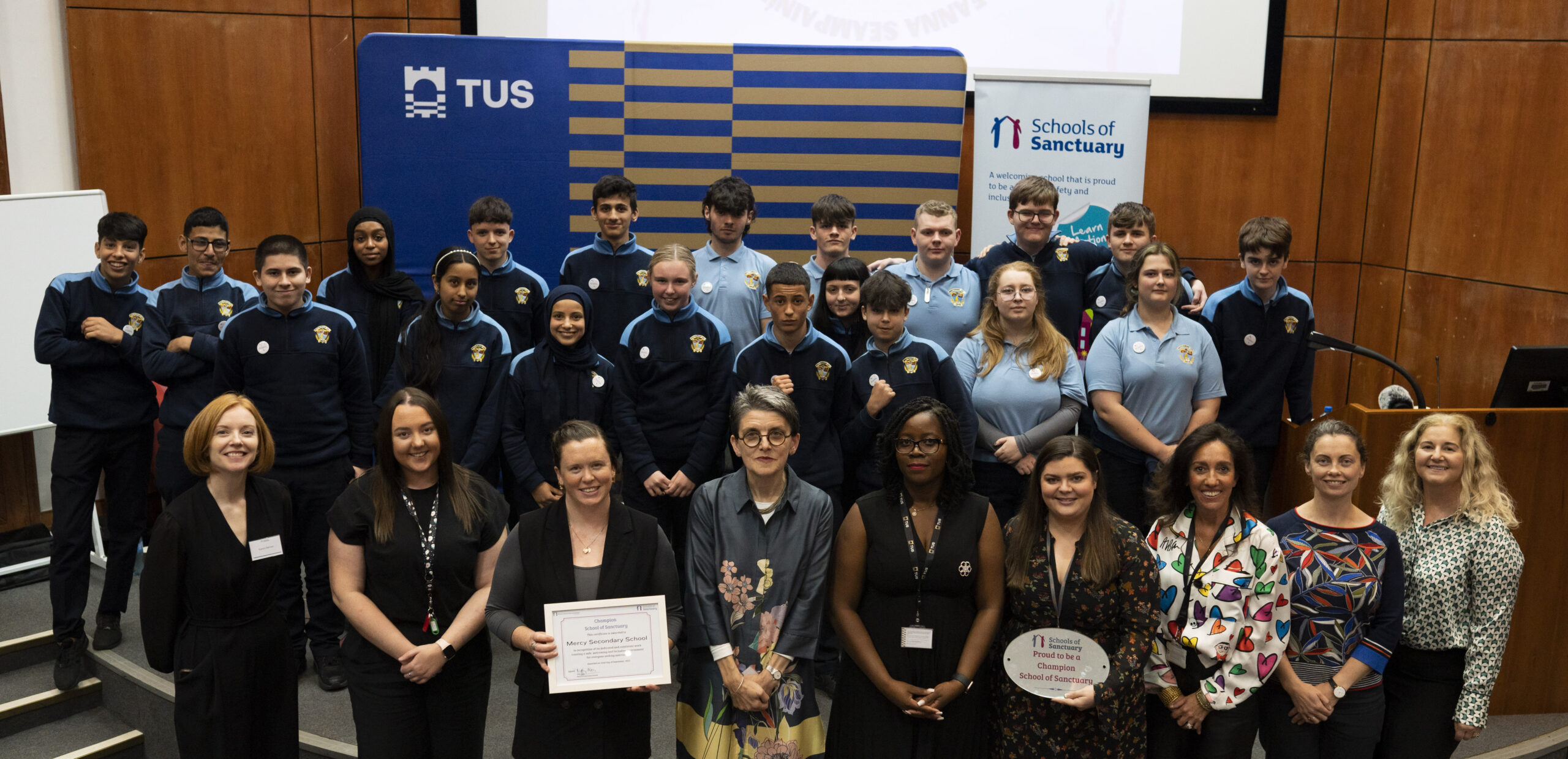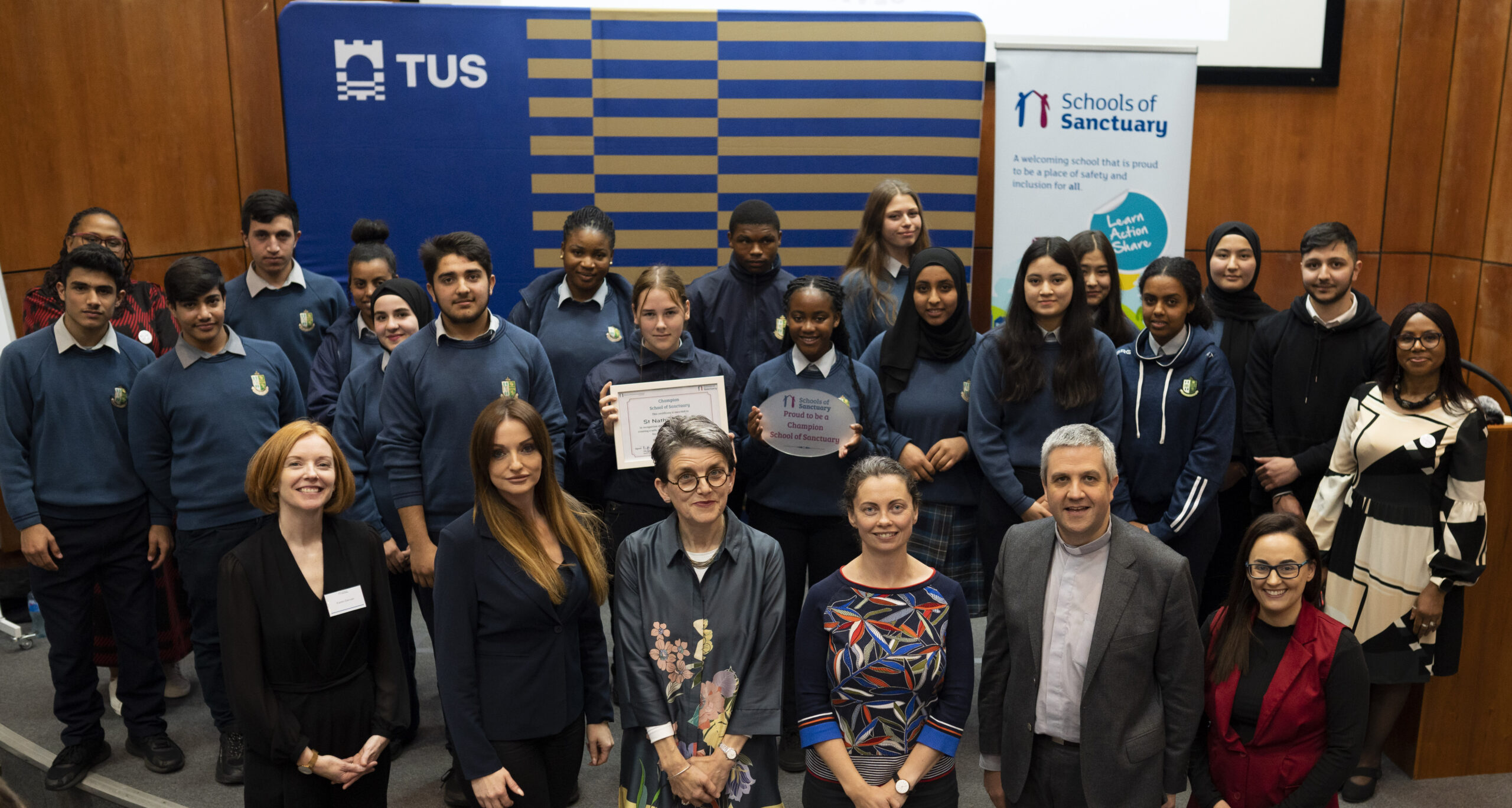 Schools of Sanctuary Ireland was thrilled to start the new school year with an award ceremony for two new Champion Schools. Large groups of wonderful students from Mercy Secondary School (Kilbeggan, Co. Westmeath) and St Nathy’s College (Ballaghadereen, Co. Roscommon) enjoyed a visit to Technological University of the Shannon (TUS), Athlone Campus on Friday September 22nd. They were each presented with their Champion plaques and certificates. It’s always an exciting experience for second-level students to visit a university campus and this university happens to be a very proud University of Sanctuary too!
