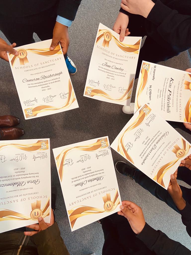Frank, Niamh & Michael brought 6 of the school’s amazing young Ambassadors to represent the work. Pledge was re-signed and certs awarded to students.